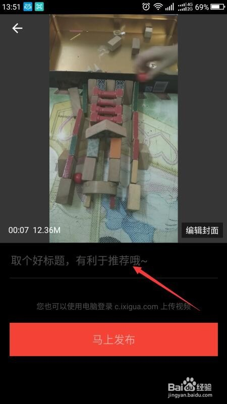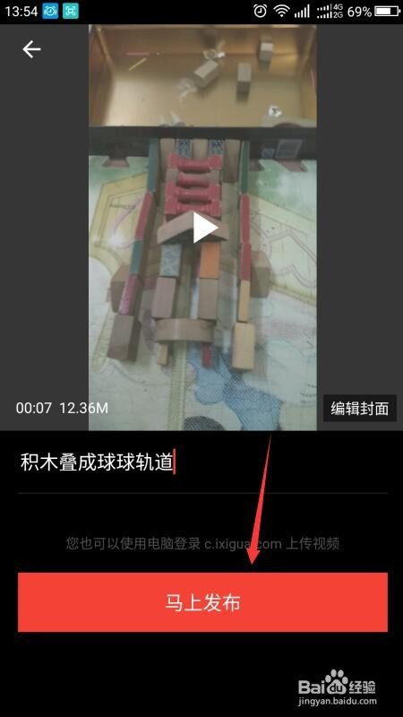 再点击顿时发布,界面显示正在上传,稍等一会。
