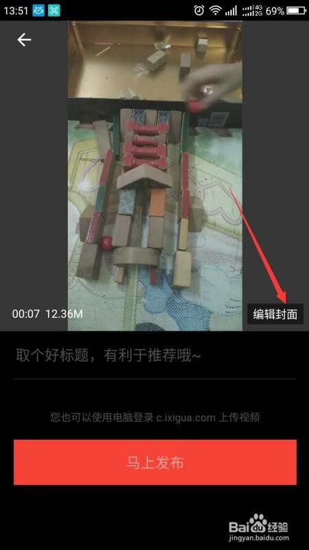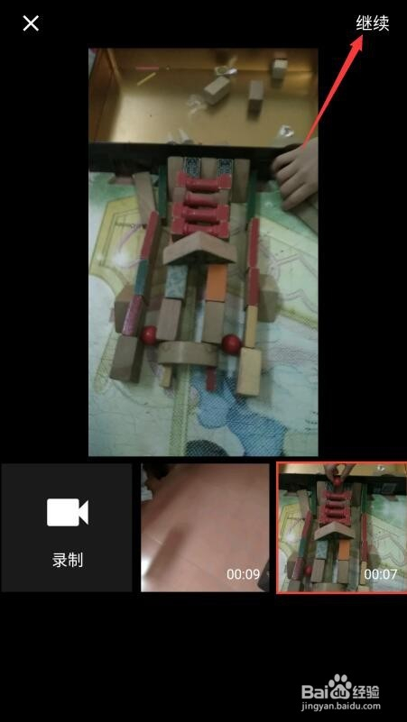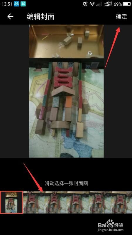 横标的目的滑动选择所要的视频,选好后点击继续,再点击编纂封面。