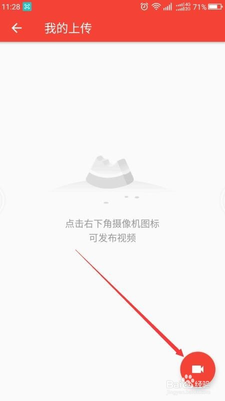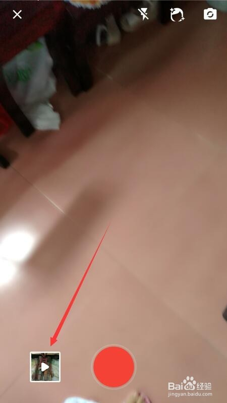 再点击右下角的拍摄按钮,进入拍摄界面,想要上传以前保留的视频,则点击如图所示左下角的按钮。