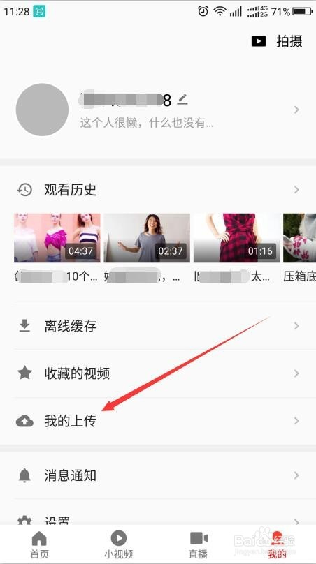 首先,打开手机上的西瓜视频,点击右下角的我。进入到本身的小我信息界面,可以点击右上角的拍摄,也可以点击”我的上传“