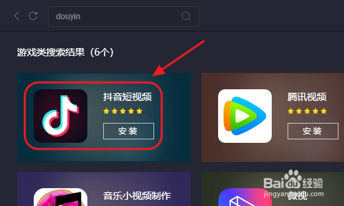 然后在上方的搜索框输入“抖音”或者拼音“douyin”,如许就能找到鄙人面的列表中按到抖音短视频选项了;