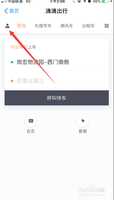 进入滴滴出行进入下图页面,在页面中找到人物图标点击进入。如下图红标位置所示。