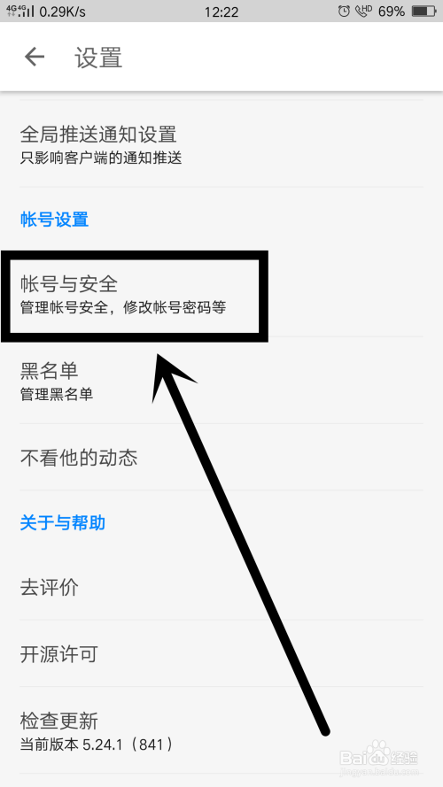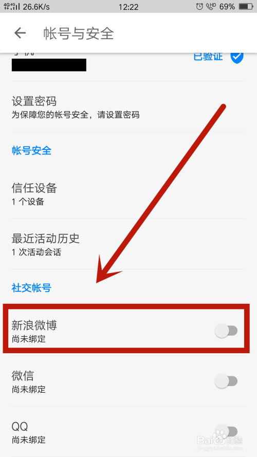 账号与平安中,点击社交账号-新浪微博,如图所示
