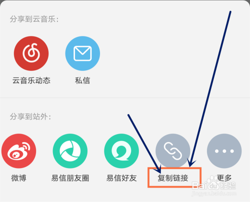 在分享对话框中,在分享到站外-选择复制链接,如图所示