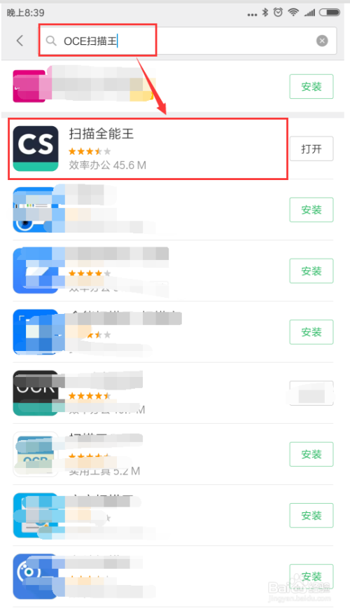 打开我们的智妙手机,找到手机中的应用商城APP,在应用商城APP中搜刮关头字“OCR扫描王”,在搜刮出的选项中打开并下载OCR扫描王这个软件。