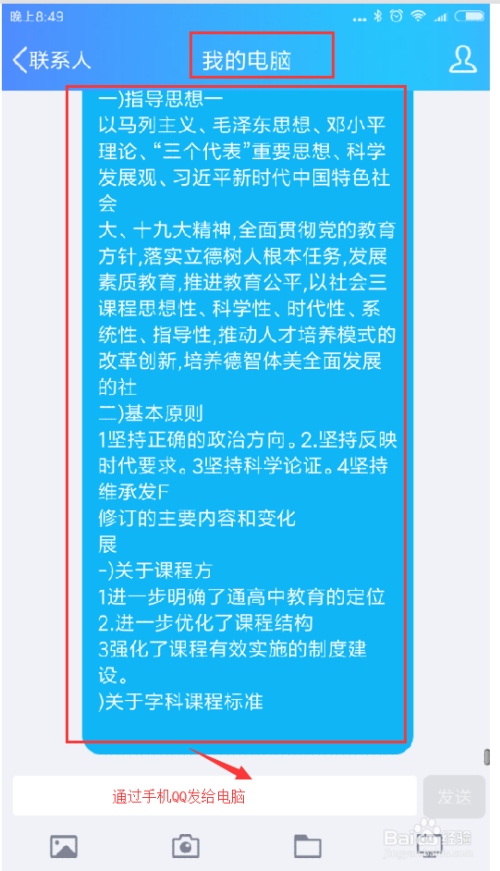 将文字稿复制完当作之后,我们可以经由过程手机QQ等一些软件,将复制的文字稿粘贴发送到我的电脑,这里需要手机QQ与电脑QQ同时登岸,如许我们就获得了网页上面不成复制的文字内容了。当然,复制的文字不成能完全一样,可能会有一些错误,我们最好在细心查对一下,至此,我们就当作功的将网页不成复制的文字获取下来了。