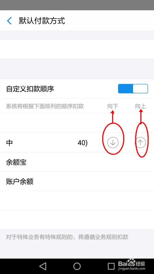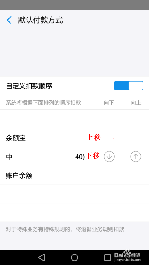 在默认付条目体例页面,可以看到系统按挨次摆列扣条目体例,点击所需要调整的付条目体例。(如下图)