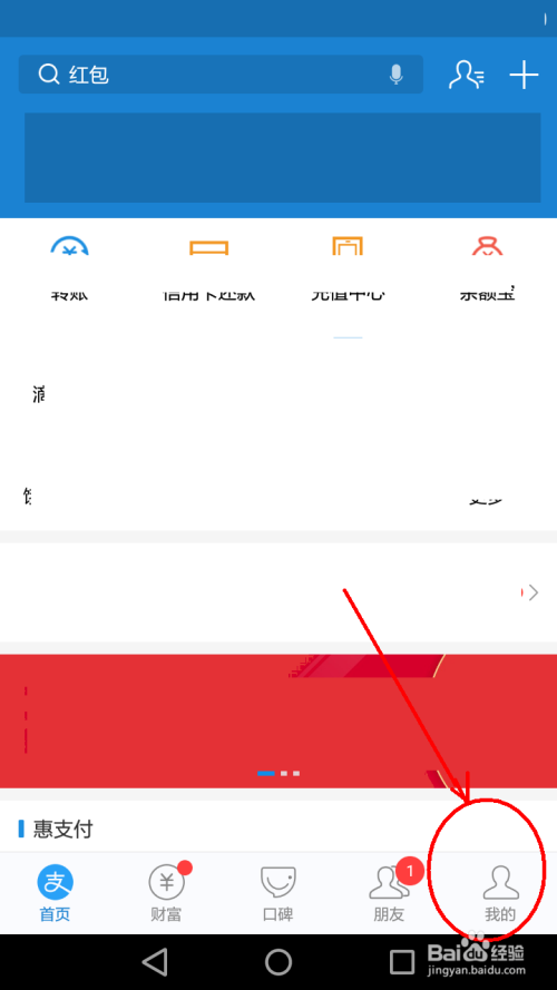 登录付出宝首页,点击底行“我的”。(如下图)