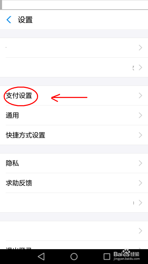 在设置页面点有个“付出设置”,点击它。(如下图)
