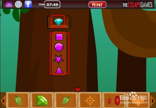 再回到中心场景,中心有两颗树,别离有图案标识。别离按左侧场景右头上的图案和右侧场景鸡蛋颜色设置,可别离获取一颗宝石和一片钥匙。
