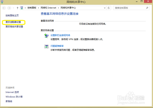 进入收集和共享中间,在左上角左键打开更改适配器设置进入收集毗连状况。