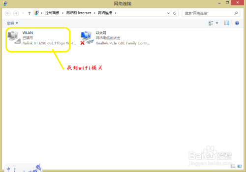 进入收集毗连状况,WLAN模式为禁用状况,这就是win8系统的wifi地点。