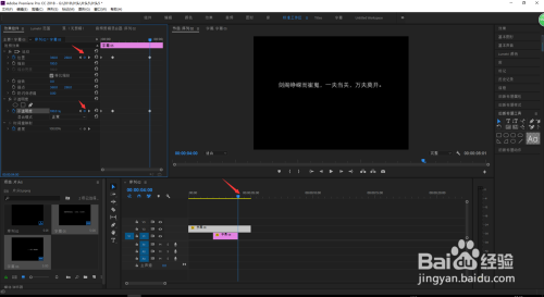 将字幕条设置为5s和2s。鼠标点击字幕条,并将指示器拖到2s处,找到左上方的结果控件,点击位置和不透明度前端的秒表以及后面的小圆点(小圆点位置比力靠后,若是没找到可以拖动面板往右移),数值不消变。