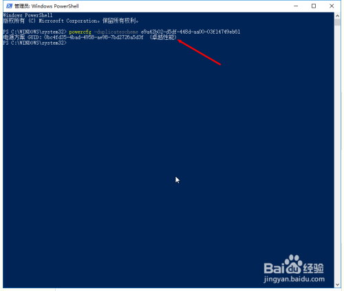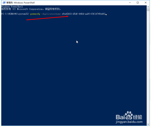 输入号令{不含引号}:“powercfg -duplicatescheme e9a42b02-d5df-448d-aa00-03f14749eb61”。再点击回车,呈现“电源方案 GUID:36d0a2da-8fb0-45d8-80f3-37afb1f70c3a(卓越机能)”的提醒,就可以开启卓越机能了。