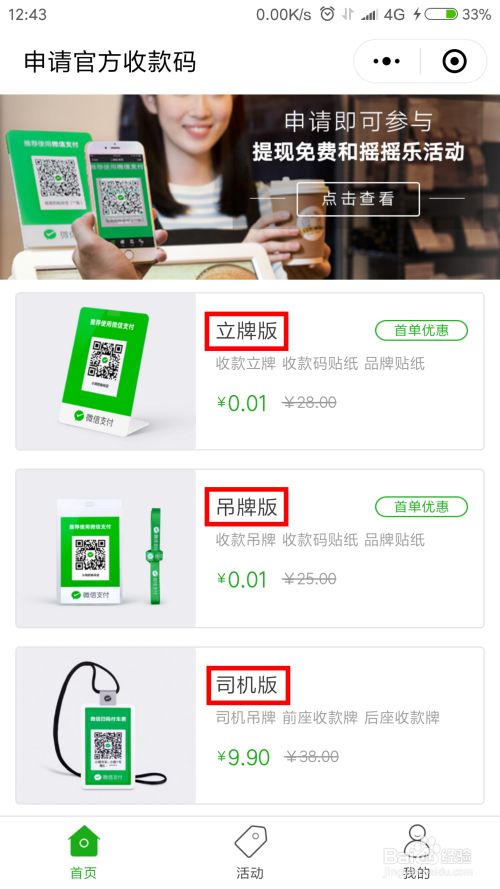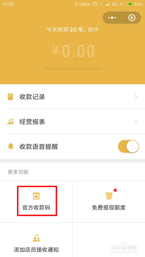 申请微信官方收条目码,可以获得免费提现额度,还可以介入摇摇乐活动。
