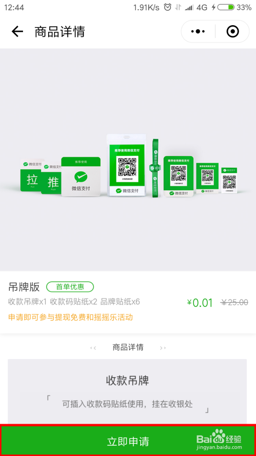 点击想要的格式(以吊牌版为例),进入详情页后点击"当即申请"。
