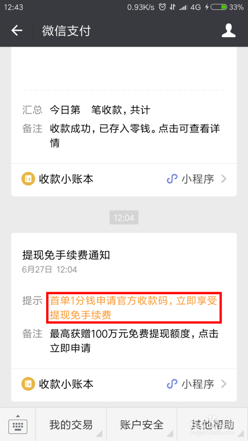 体例3(下图4):作者是用收条目码收过钱,可以经由过程微信提醒进入小账本