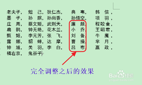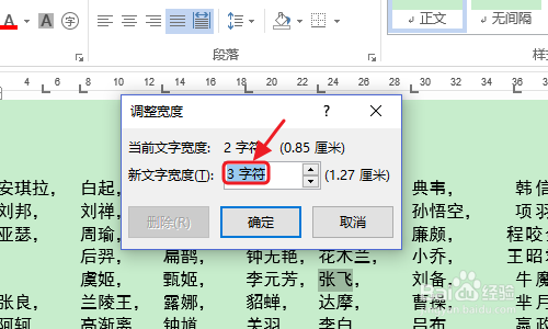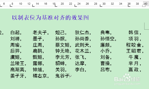 在分离对齐里,我们依旧将新文字宽度设置为3,最后用格局刷将所有两个字的名字格局刷一遍,如许就看到了图二的最终结果;