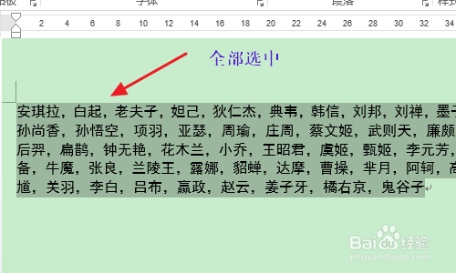 好比下图就是一组全数为名字的word文档,并且此时没有设置对齐,所以看起来不是很美不雅,若是这些名字的字体、大小以及标点符号都一致的话,我们可以做以下快速对齐处置,那就是首先选中全数这些文字;