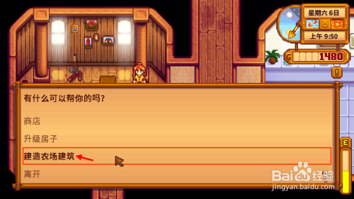 除礼拜二以外罗宾都是会开店的,右击桌上的收银机,选择建造农场建筑。