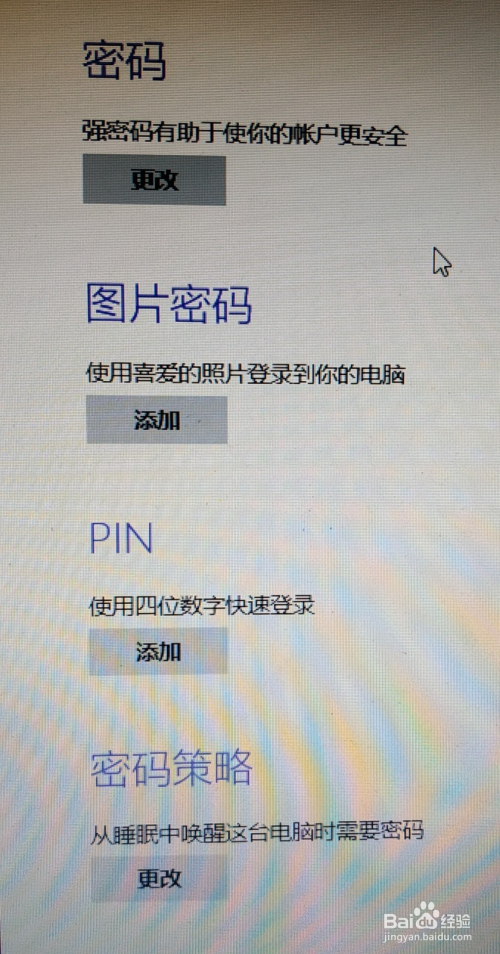 然后你就可以在界面中看到:密码、图片密码、PIN、密码策略四个选项