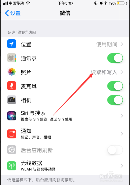 查抄手机设置,看是不是许可微信读取和写入照片。只有许可读取和写入,才能下载微信图片。苹果手机的查抄方式为:设置——微信——照片——选择读取和写入。