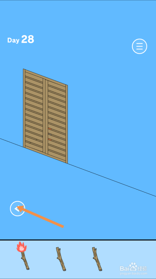 在右边房间里,点击3根木棍。拿走3根木棍后,点击标的目的左箭头,进入左边房间。