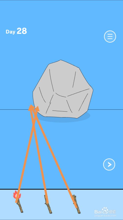 在左边房间里,将3根木棍拖动到石头左边。点击石头,然后点击游戏机第二十八关就过关了。