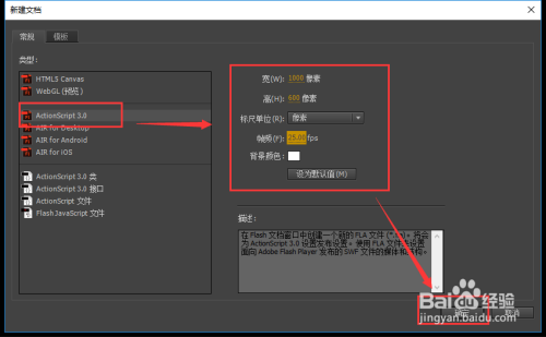 首先要确保我们电脑上下载安装了flash软件,这个应该就不消说了吧,直接鼠标双击安装好的flash的快捷图标,打开flash软件,新建一个动画项目,设置项目标大小为1000*600像素,帧频为25,布景颜色为白色,然后点击确定。