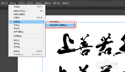 打开库窗口,将导入的毛笔字素材图片拖入到画布的舞台中心;选中舞台的毛笔字素材,执行点窜菜单中的位图号令,选择将位图转换为矢量图,在弹出的矢量图转换窗口直接点确定即可,将位图毛笔字素材变为矢量图。