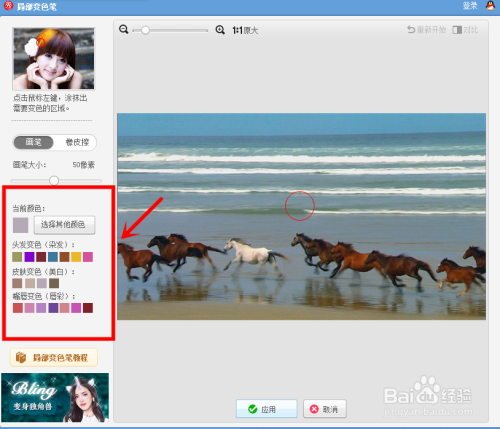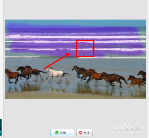 当我们对图片局部进行上色完当作后点击下方的应用选项来确定适才的操作;