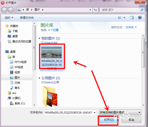 当找到图片后,选择图片,随后点击选择框下方的打开即可;