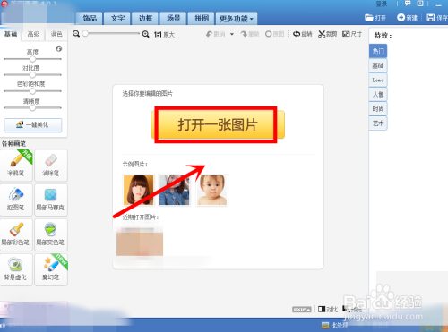 这时在呈现的页面中点击中心的打开一张图片图标;