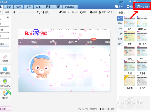 此时,我们即可看到图片添加花瓣后的结果图,我们经由过程点击右上角的保留与分享来保留图片即可。