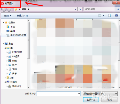 此时就可在屏幕上看到打开图片的选项框,我们按照图片存在电脑的位置找到图片;
