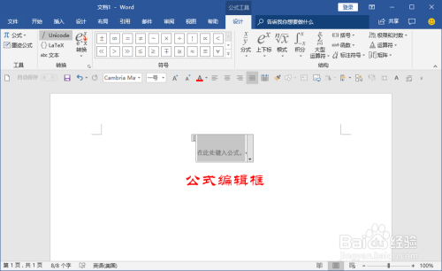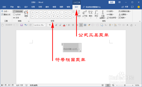 我们打开公式编纂器后,在顶部的菜单栏就会新呈现一个“公式东西”设计菜单了,在这里面我们找到“符号”栏目。