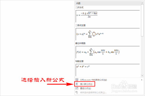 在子菜单中,选择插入新公式,点击后,在我们的word文档中就会呈现一个公式编纂器,我们就可以在此插入各类专业符号了。