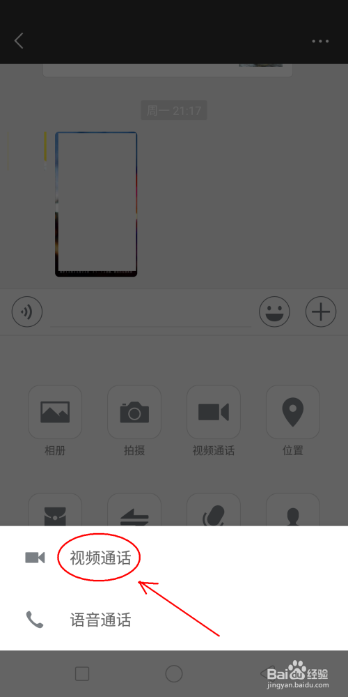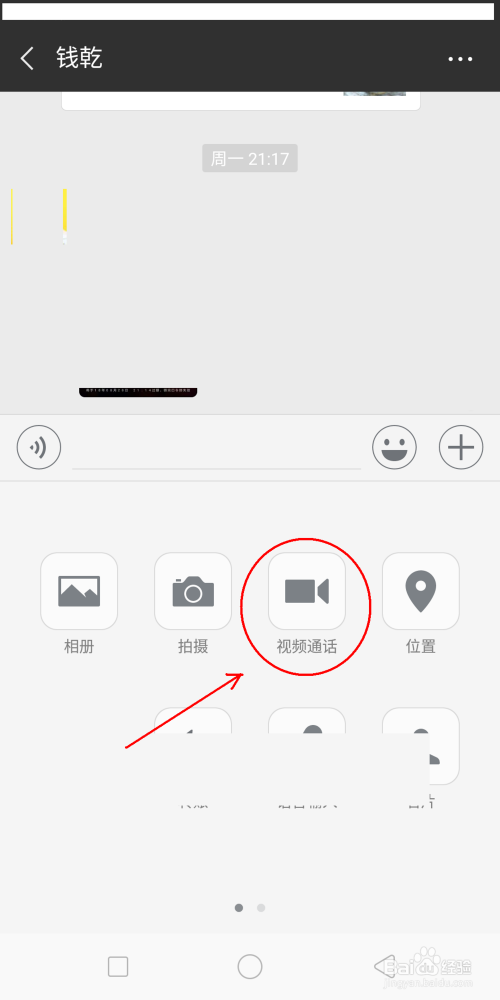 如许可以看到你想与人分享的信息东西,点击”视频通话“。(如下图)