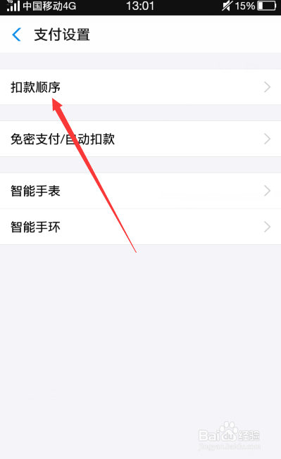 在扣条目名单点击你要点窜的付出名字,这时它名字后会呈现别离呈现一个标的目的下和标的目的上的箭头,点击箭头就可以点窜付出挨次了