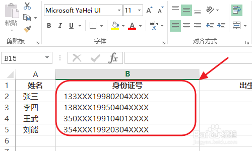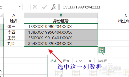 当然前提前提是我们有一份员工身份证电子表格,如下图一所示...然后我们将这列所有的身份证号码全数选中;