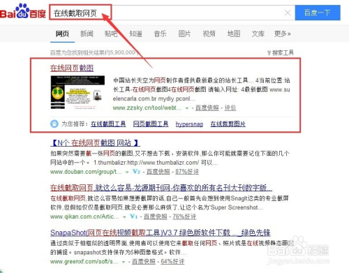 若是你利用的浏览器不是360安全浏览器,刚巧其他浏览器不具备截取完整网页的功能,那么我们还可以操纵在线东西截取完整网页,这里我们先百度一下“在线截取网页”。
