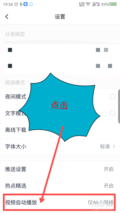 打开设置后,能看到视频主动播放选项,点击一下。如图所示