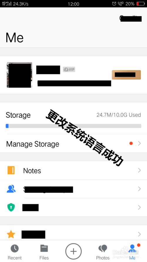 在返回微云本家儿界面,此时软件界面已经变为英文界面,如图所示