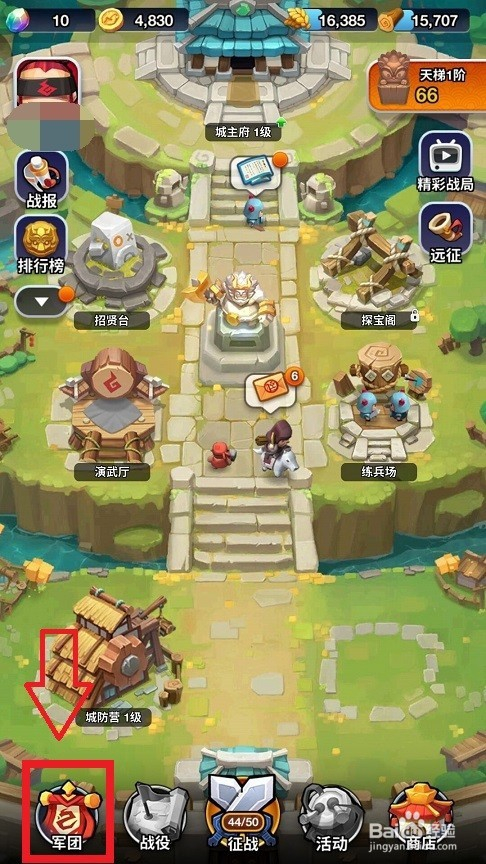 进至最初的天梯场景战模内,鄙人端的这行瞧到首个‘军团’的字样,这儿就是开添的进口,然后将此钮轻点。