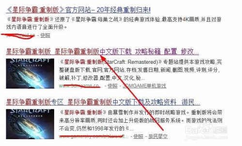 在浏览器搜刮星际争霸重制版,进行搜刮。