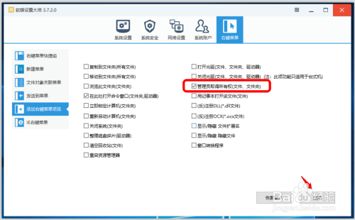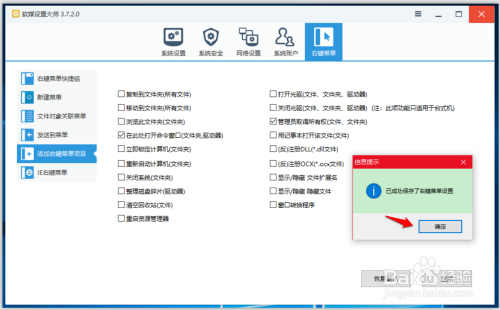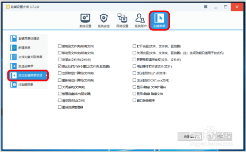 在添加右键菜单项目对应右键窗口中,我们可以按照本身的需要,选择添加右键菜单。