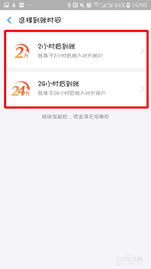 鄙人一个页面中,我们按照需要选择转账到账时候,这里我以选择2小时到账时候为例