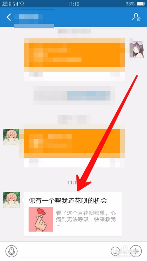 然后进入到与该老友的聊天界面之后,点击打开邀请帮手还条目的链接。
