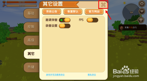 最后点击右上角的x号封闭设置页面,然后再玩游戏。