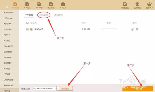 (4)设置压缩后的PDF文档保留的位置,建议直接保留到桌面,便于转换完当作后查找;点击“起头压缩”,完当作后可直接在“转换完当作”打开并查看结果